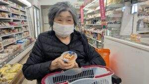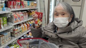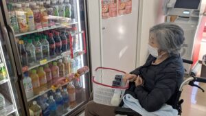 こちらのご利用者は、棚の前でじっくりと商品を見比べながら、「どれにしようかな?」と迷われている様子でしたが、プリンとリンゴジュースを選ばれ「このジュースが好きなんだよ」と嬉しそうに教えてくれました♪