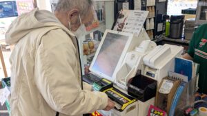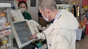 職員がそばで見守る中、画面のタッチ操作と支払いをご自身で行うことができました。