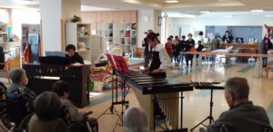 湊中学校の吹奏楽部のみなさんによる「マリンバの演奏」「よさこい踊り」