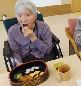 「すしが食べれたら長生きする」とお話された方が、「うれしい、お寿司食べれるなんて」と言って頂きました。