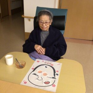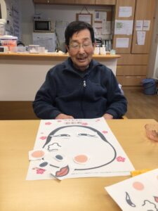 福笑いをして、甘酒を皆さんで楽しみました