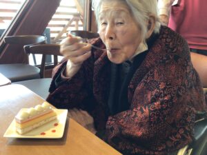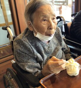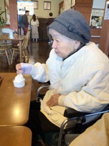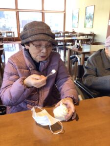 花見の帰りに元気いちばに寄り、ソフトクリームやケーキを召し上がって「花より団子ね」と終始笑顔で過ごしていただけました。