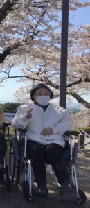 当日は暖かく、風もない晴天に恵まれて満開の桜に利用者様も「きれい。何十年ぶりに日和山に来れて嬉しい。」と普段見られない笑顔でお花見をされていました。
