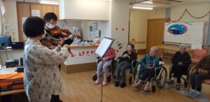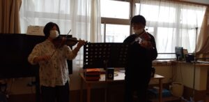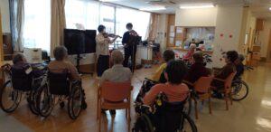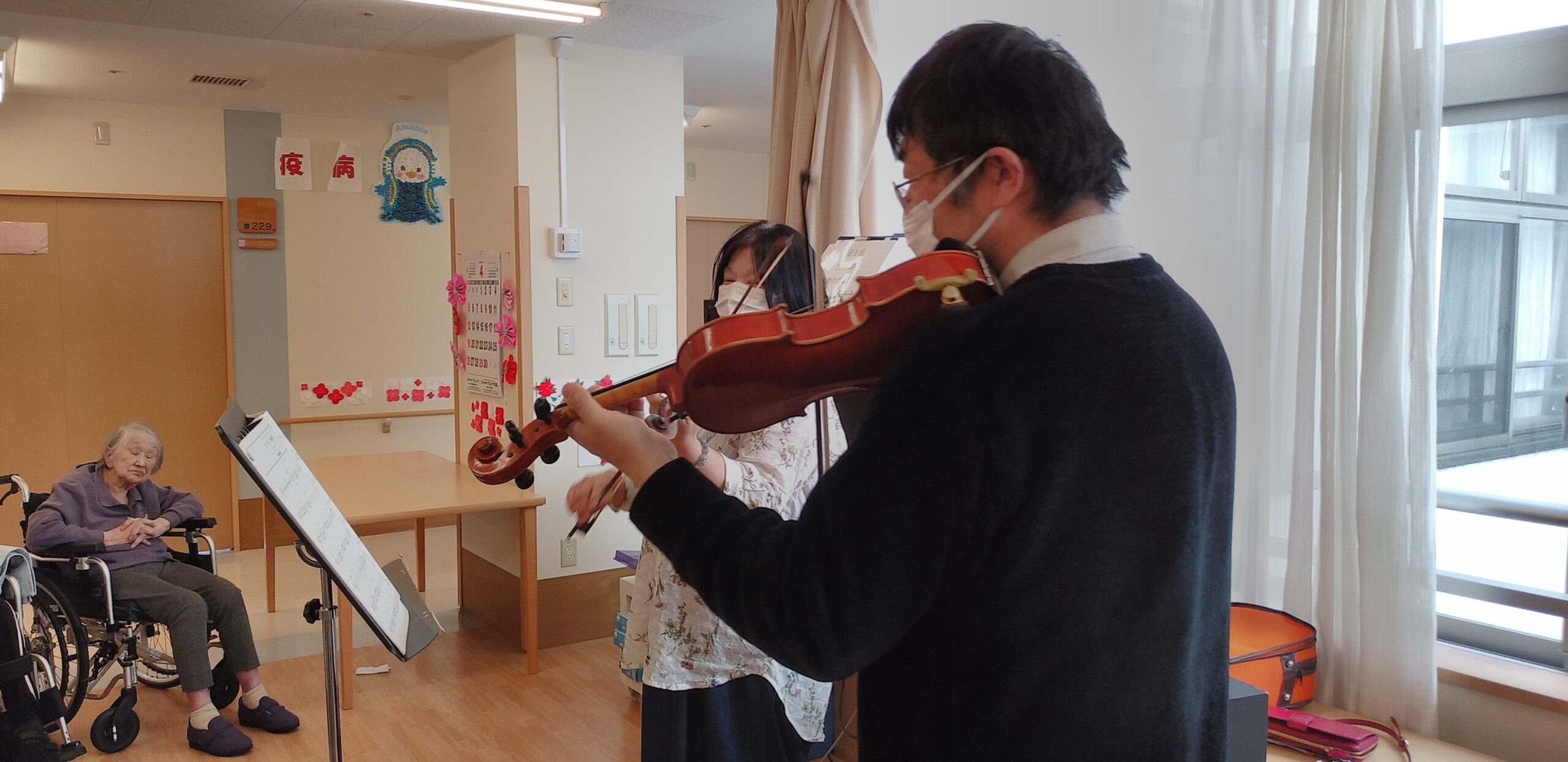 4月14日(火)にご利用者の皆様が毎回楽しみにされている 石巻シティフィルハーモニー管弦楽団の方々によるバイオリン演奏会が開催されました。