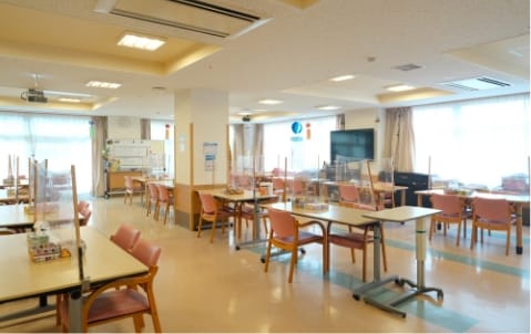 通所リハビリ(デイケア)のスペースです。個別リハビリテーションの実施とともに、お食事や談話、レクリエーションなど、皆様が集い、過ごしていただくスペースです。