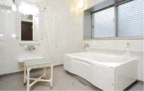 通所リハビリテーションで利用する浴室は一般浴と車いす用のリフト浴があります。 一般浴・リフト浴は湯船に浸かると目の前に大きな窓があり外の庭を眺めながら入ることができるので、温泉にいるような気分を味わえます。脱衣所と浴室にはパネルヒーターが設置してありますので寒い冬でも快適です。